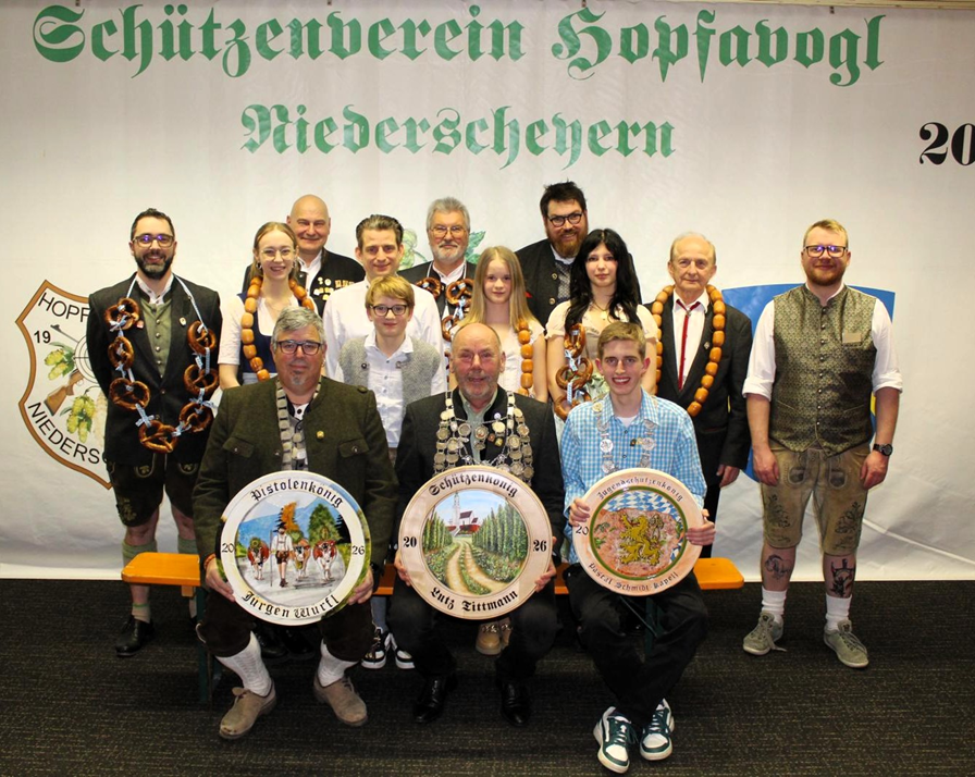 Der SV Hopfavogl Niederscheyern startete am vergangenen Samstag, 24.01.26 mit dem traditionellen Neujahrsessen ins Jahr 2026. Es fanden sich zahlreiche Mitglieder mit ihren Familien zu diesem Anlass im Vereinsheim ein. Bei leckerer Ente mit Blaukraut und Semmelknödel, von der Metzgerei Wörmann, feierte man bei ausgelassener Stimmung die herausragenden Ergebnisse der Schützinnen und Schützen. Denn es fand auch dieses Jahr wieder der interne Wettkampf um die Titel „Vereinsmeister“, „Vereinskönig“ und „Wanderpokal“ in den Disziplinen Luftgewehr und Luftpistole statt.